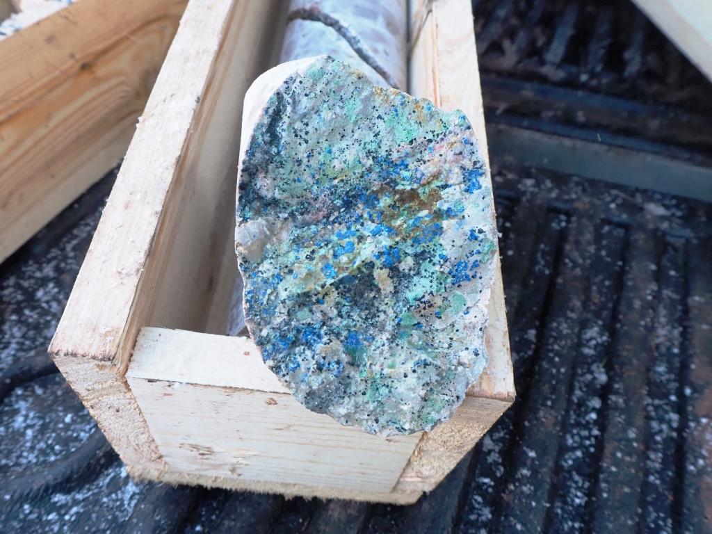 Już pierwsze metry wiercenia pokazały, że geologia (a w tym przypadku także historia) lubi zaskakiwać. Na głębokości nieco ponad 40 m nawiercono fragment drewnianej obudowy. Jest to pozostałość po historycznej eksploatacji rud miedzi, prowadzonej w tym miejscu już od czasów Zygmunta III Wazy. Choć lokalizację otworu wyznaczono z uwzględnieniem dostępnych historycznych danych górniczych, to nie uwzględniały one tego fragmentu dawnej kopalni. W profilu otworu wiertniczego stwierdzono także przejawy mineralizacji miedziowej w postaci intensywnych nalotów malachitu, azurytu i obecności chalkopirytu.