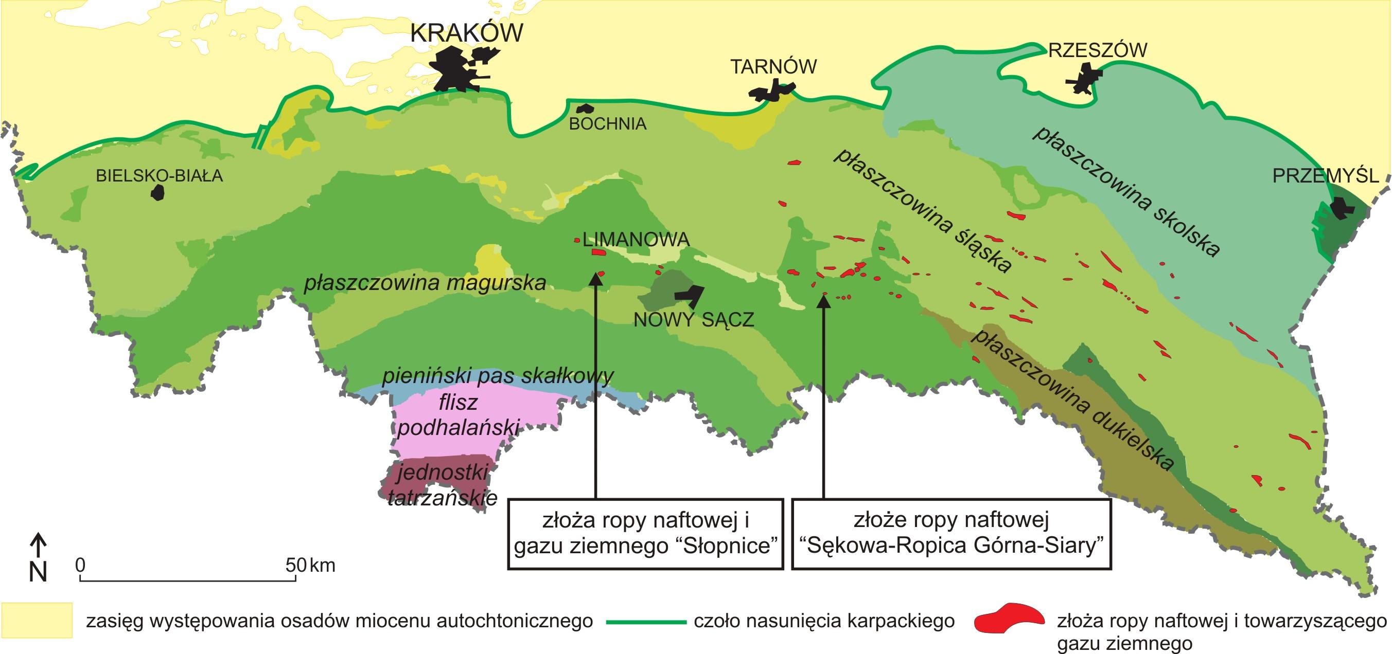 Mieszkańcy Małopolski i Podkarpacia od dawna byli świadkami takich zjawisk. Ziemie te stanowią bowiem kolebkę światowego przemysłu naftowego. To właśnie tu, w połowie XIX wieku, na obszarze występowania płaszczowinowych nasunięć Karpat zewnętrznych (Karpat fliszowych) nastąpił intensywny okres odkryć złóż naftowych i rozwoju wydobycia ropy naftowej.