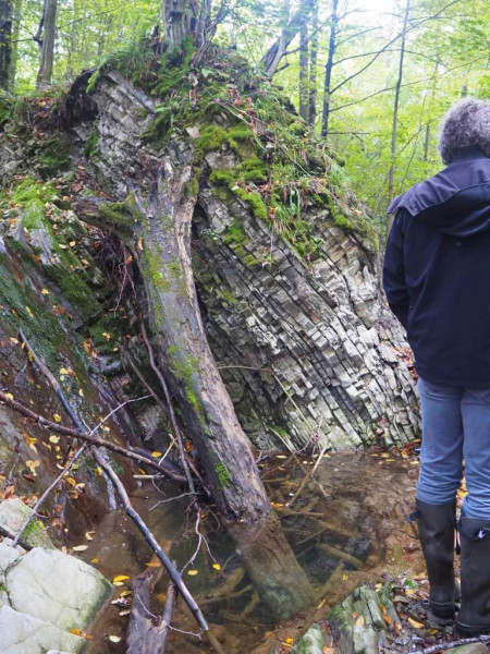 Łupki pstre profilu południowego skrzydła antykliny pienińskiej. Potok Mały Rogoźnik