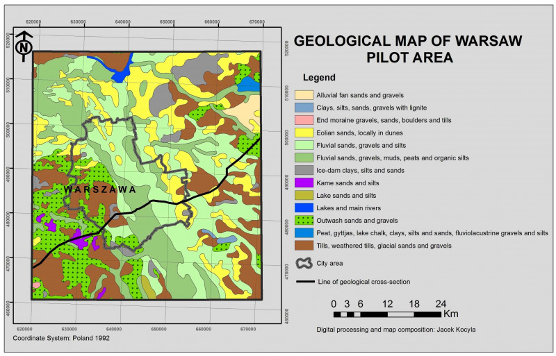 Uproszczona mapa geologiczna aglomeracji warszawskiej i obszarów przyległych