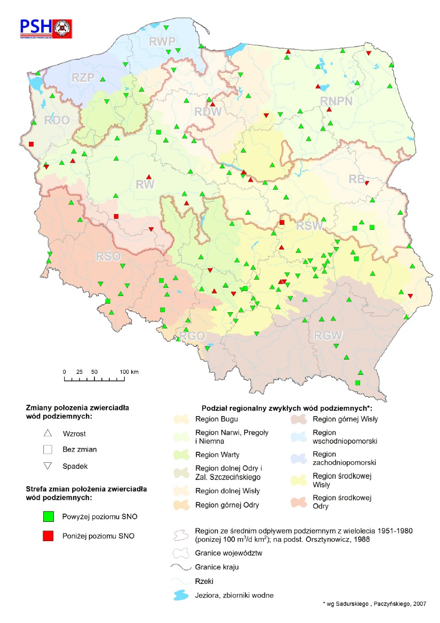 Zmiany położenia zwierciadła wody podziemnej w pierwszym poziomie wodonośnym o zwierciadle swobodnym