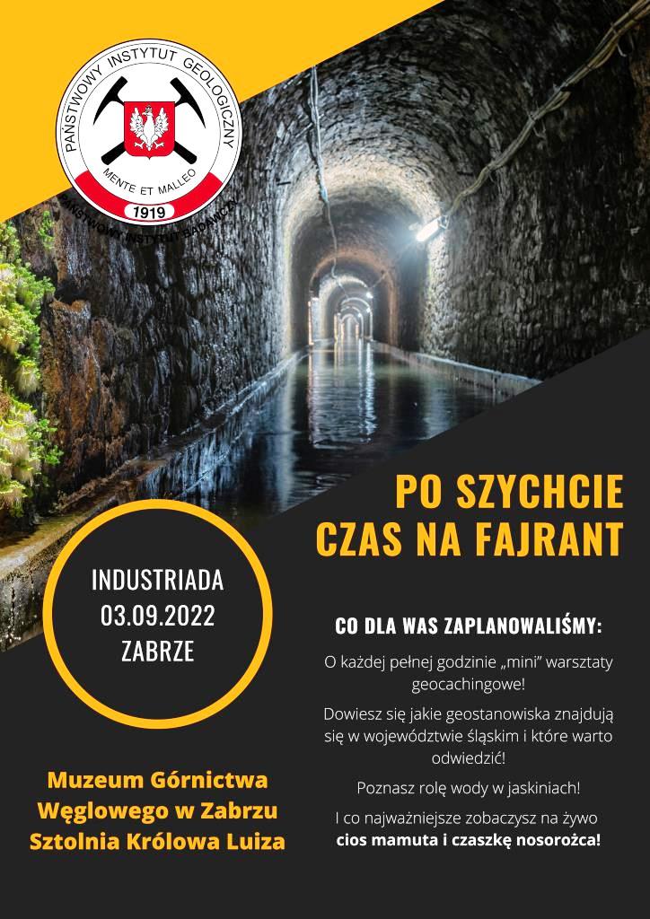 3 września 2022 r. w Muzeum Górnictwa Węglowego w Zabrzu na terenie kompleksu Sztolnia Królowa Luiza odbyła się XIII edycja święta Szlaku Zabytków Techniki Industriada 2022, w której uczestniczyli pracownicy Oddziału Górnośląskiego Państwowego Instytutu Geologicznego-PIB.