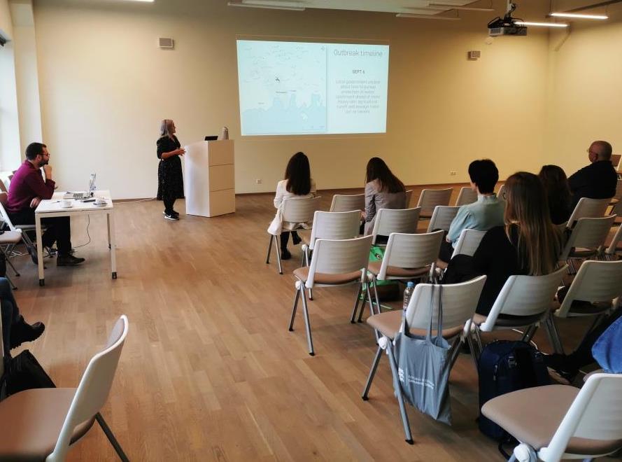 Drugiego dnia partnerzy projektu podzielili się informacjami na temat działalności swoich organizacji, bieżących badań i innych projektów, a także pomysłami na przyszłą współpracę. LEGMC zapoznało uczestników spotkania z wynikami projektu LIFE GOODWATER IP – już zrealizowanymi zadaniami i planowanymi jeszcze działaniami mającymi na celu poprawę stanu łotewskich wód powierzchniowych, a także innymi projektami transgranicznymi, które już zostały zrealizowane. Obecni na miejscu goście zapoznali się także z problematyką prognozowaniem pogody i analizą klimatu na Łotwie.