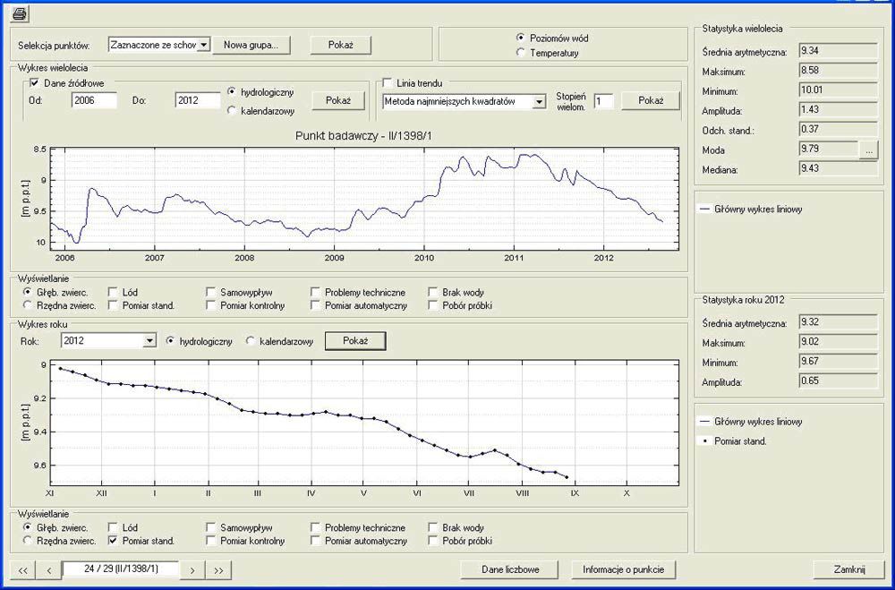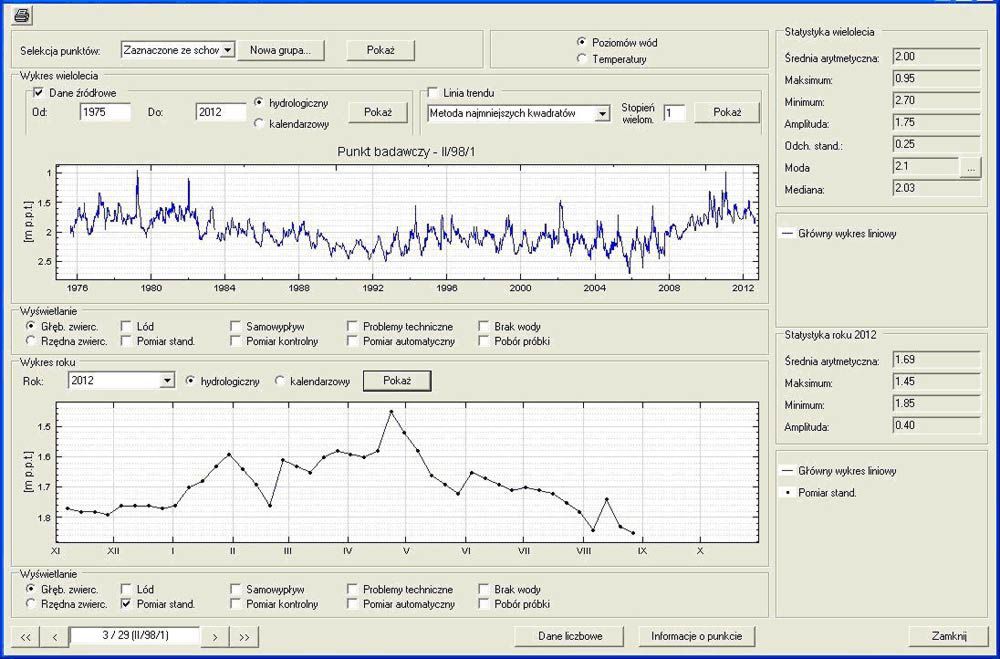 W sierpniu 2012 r. 28% punktów wykazywało położenie zwierciadła wody w strefie stanów niskich, 36% w strefie stanów średnich oraz 36% w strefie stanów wysokich.