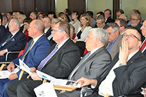 Uczestnicy spotkania. W pierwszym rzędzie zasiedli (od prawej): zastępca prezesa Zarządu NFOŚiGW Artur Szymon Michalski, przewodniczący Rady Nadzorczej NFOŚiGW prof. Roman Niżnikowski, prezes Zarządu NFOŚiGW Kazimierz Kujda, dalej jego zastępca Roman Wójcik i prof. Bohdan Żakiewicz