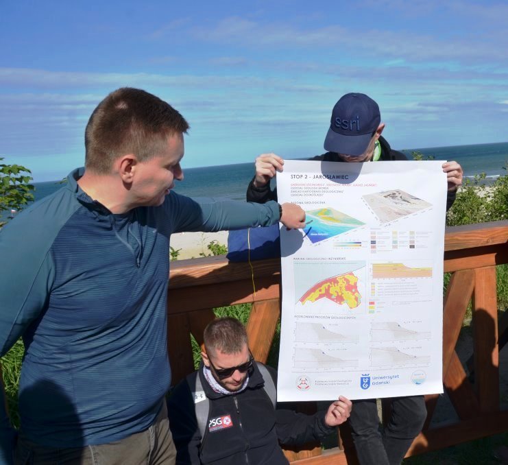 Ostatniego dnia konferencji odbyła się wycieczka terenowa, podczas której uczestnicy mogli zapoznać się z wynikami badań prowadzonych przez PIG-PIB w obrębie wybrzeża morskiego oraz niezapomnianymi widokami klifu w Wiciu (Budowa geologiczna obszaru – dr Grzegorz Uścinowicz), klifu w Jarosławcu (Budowa geologiczna rejonu Jarosławca – dr Grzegorz Uścinowicz, dr Paweł Sydor. Warunki geologiczno-inżynierskie w rejonie Jarosławca przedstawił mgr Krzysztof Majer z Zakładu Kartografii Geologicznej PIG - PIB. Modelowanie procesów geologicznych i dynamikę klifu objaśnił dr Łukasz Jasiński z Oddziału Dolnośląskiego PIG - PIB, a wzmożoną działalność erozyjną morza na przykładzie Zatoki Usteckiej zaprezentował dr Wojciech Jegliński, dyrektor Oddziału Geologii Morza PIG - PIB w Gdańsku.