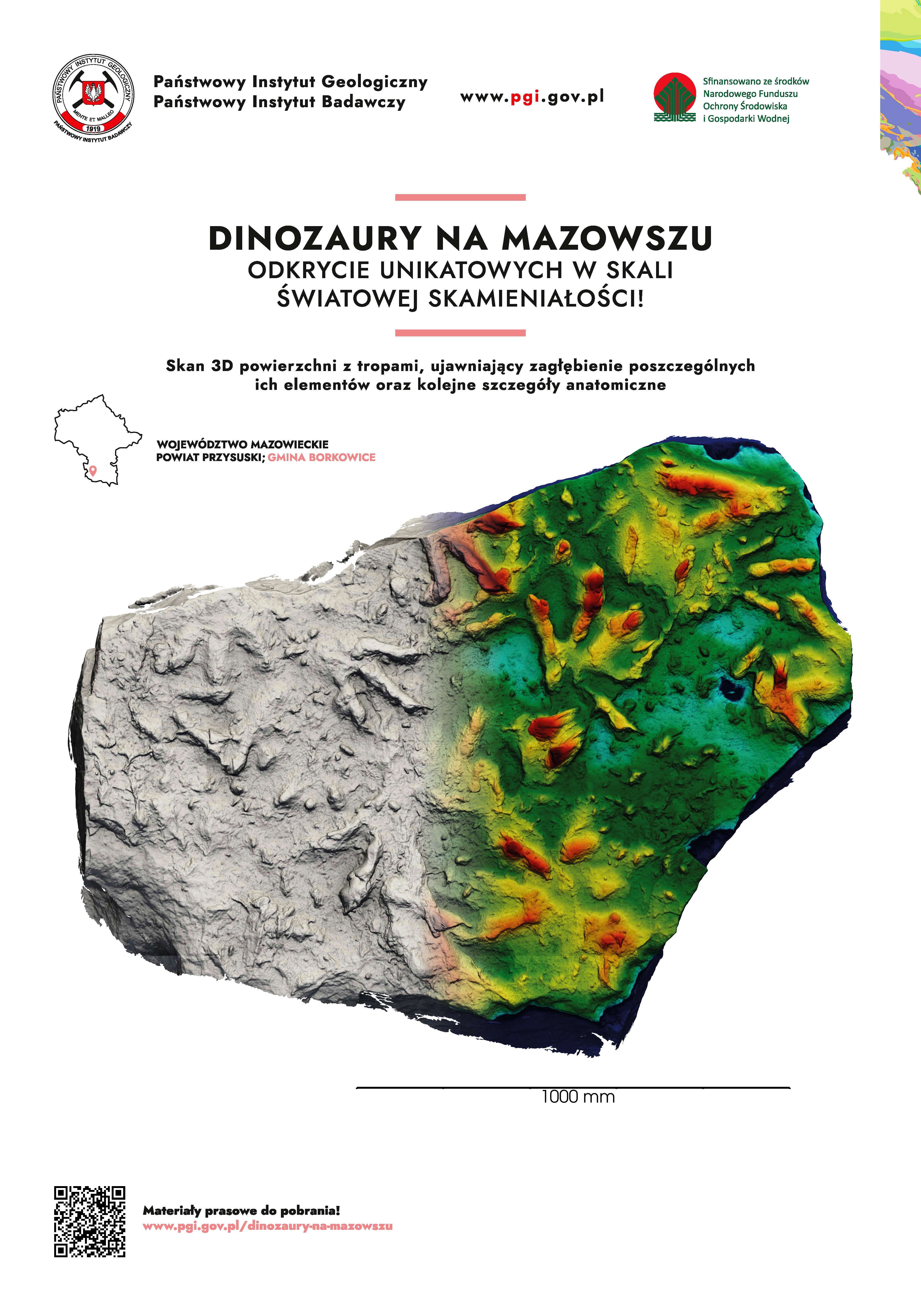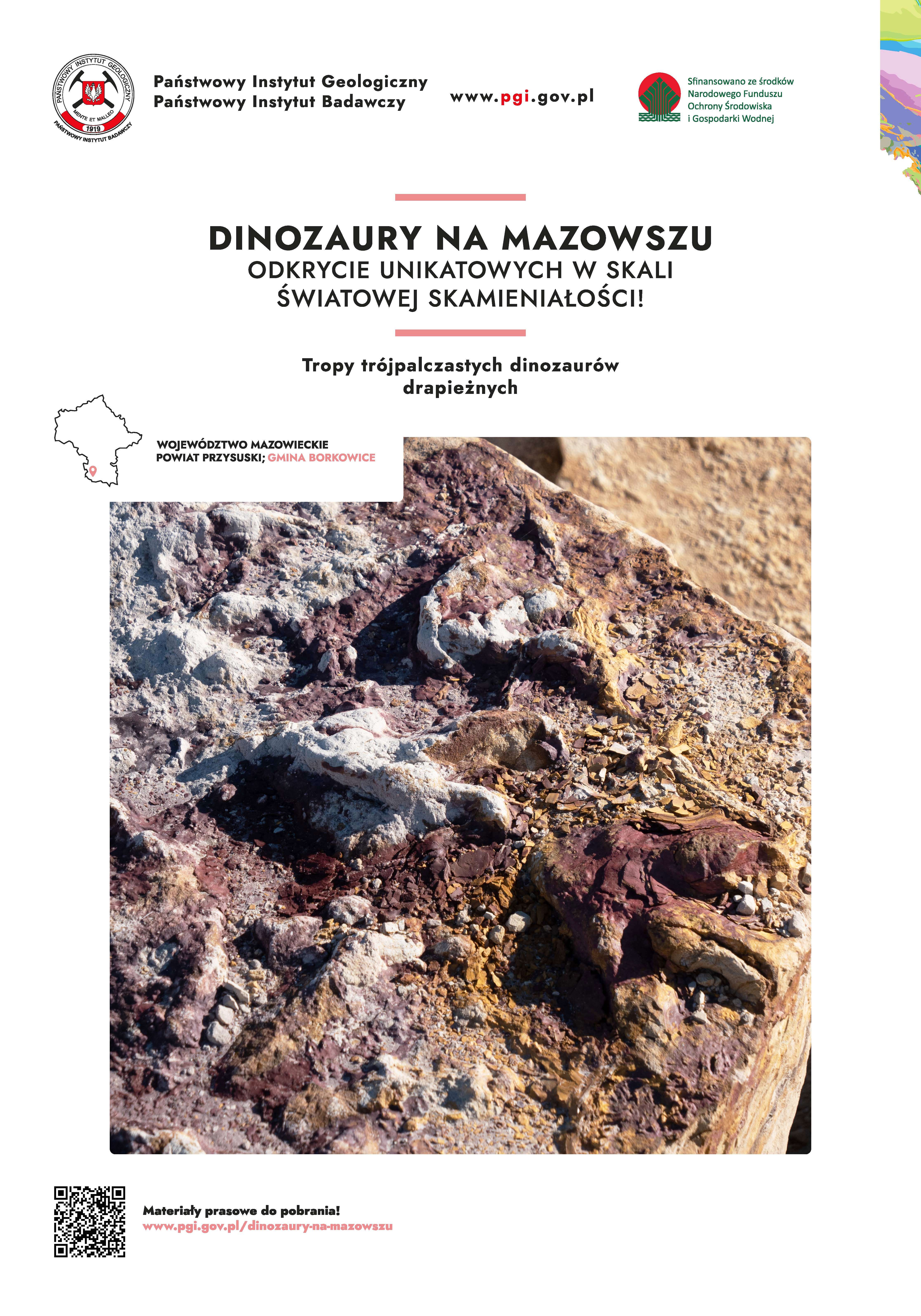 Until recently it seemed that in Poland there was little chance for spectacular discoveries of new paleontological sites with Jurassic dinosaur remains. This year's discoveries have changed this belief. In the summer of 2021, a geologist from the Polish Geological Institute - National Research Institute (PGI-NRI), Prof. Grzegorz Pieńkowski, PhD, and Dr. Grzegorz Niedźwiedzki from the University of Uppsala (Sweden) discovered numerous perfectly preserved tracks of carnivorous and herbivorous dinosaurs within the Lower Jurassic sandstone slabs in the quarry in Borkowice (which accompanied the exploited clay raw materials). The degree of their preservation is equal to that of the best known discoveries from Greenland, North America, South Africa or China.