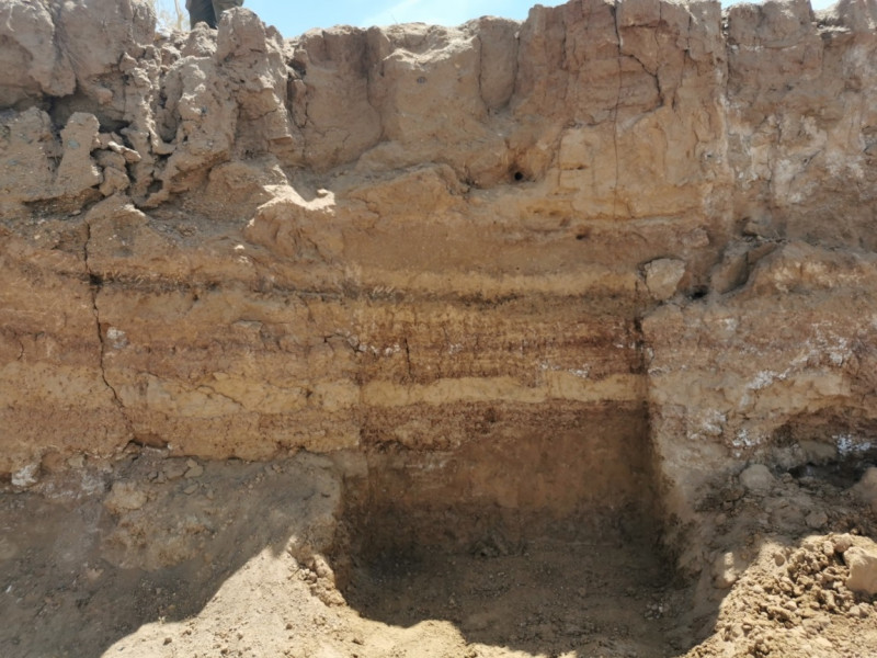 Profile of fluvial and aeolian Quaternary sediments where archaeological monuments are present (Ulan Noor Basin)