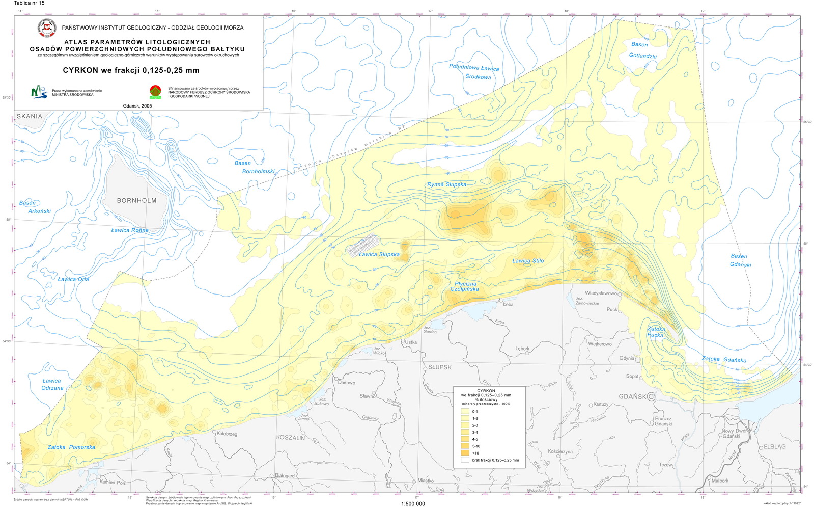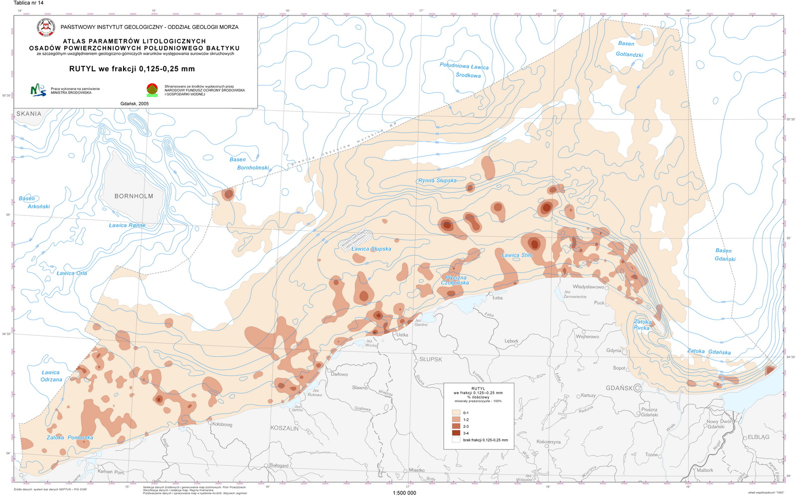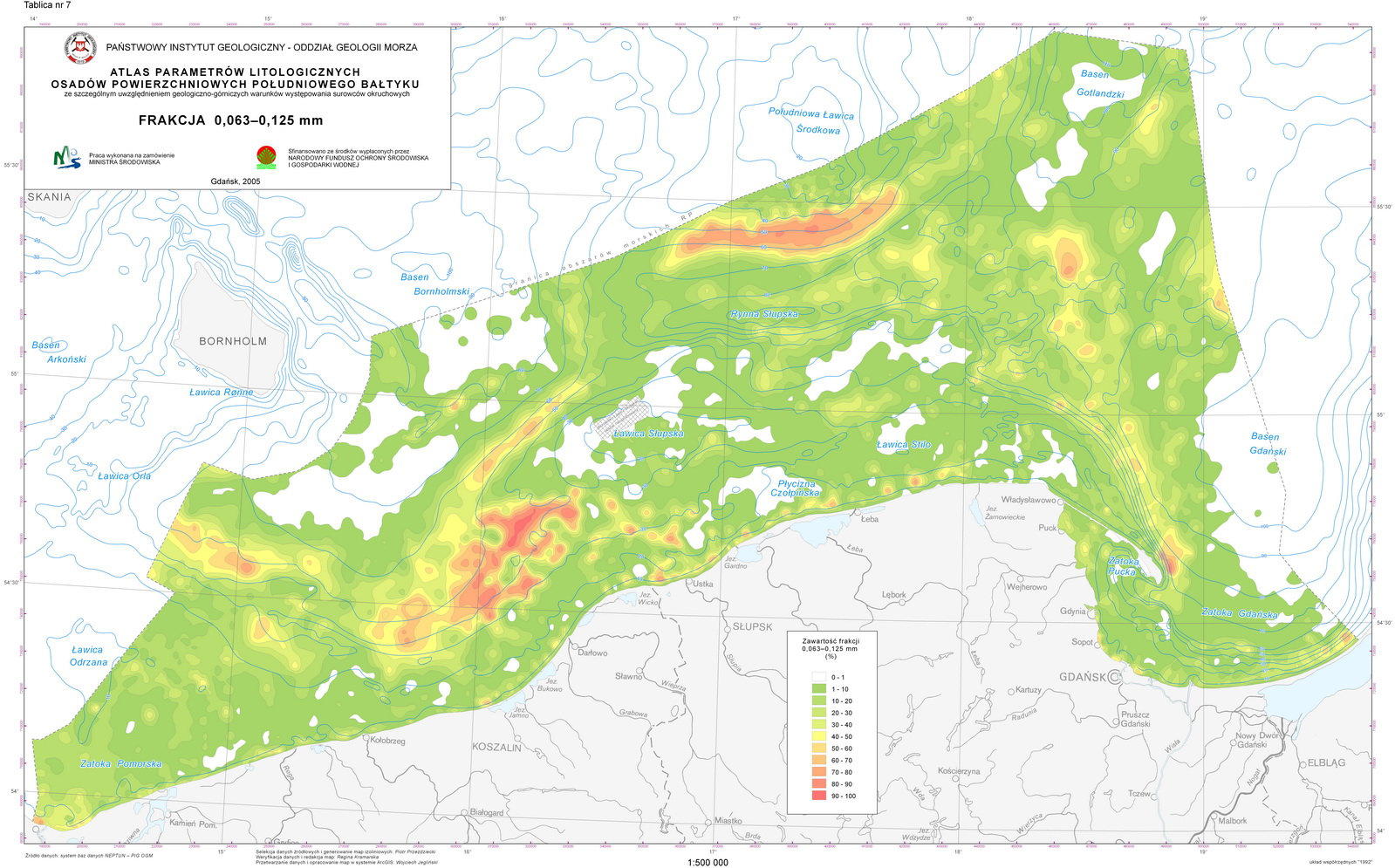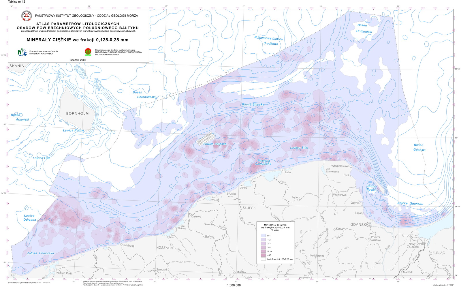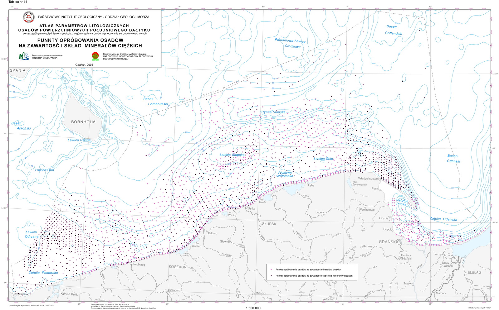 Pełen tytuł opracowania brzmi: Atlas parametrów litologicznych osadów powierzchniowych południowego Bałtyku ze szczególnym uwzględnieniem geologiczno-górniczych warunków występowania surowców okruchowych