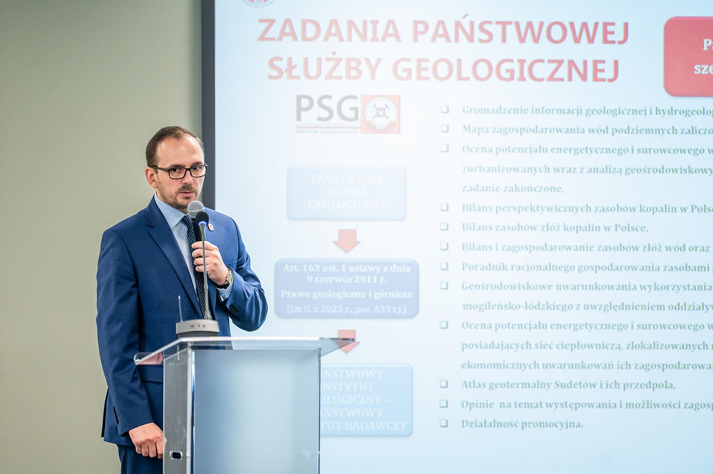 Dyrektor nie pominął również pozostałych projektów realizowanych w ramach zadań PSG, spójnych z tematyką przewodnią wydarzenia, w tym m.in.: „Ocena potencjału surowcowego i energetycznego wód termalnych i leczniczych termalnych w wybranych obszarach zurbanizowanych wraz z analizą geośrodowiskowych i ekonomicznych uwarunkowań ich zagospodarowania”, którego efektem finalnym było wskazanie 11 optymalnych lokalizacji dla budowy ciepłowni na Niżu Polskim oraz zestawienie wstępnych parametrów geologicznych i rozwiązań technicznych wraz z oceną ekonomiczną.