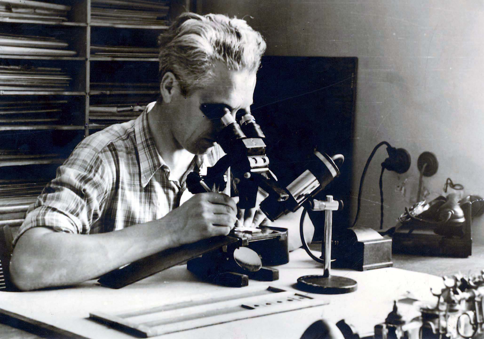 Prof. Władysław Pożaryski podczas pracy (1960 r.)