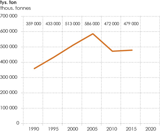 Wydobycie miedzi w Polsce w latach 1990-2015