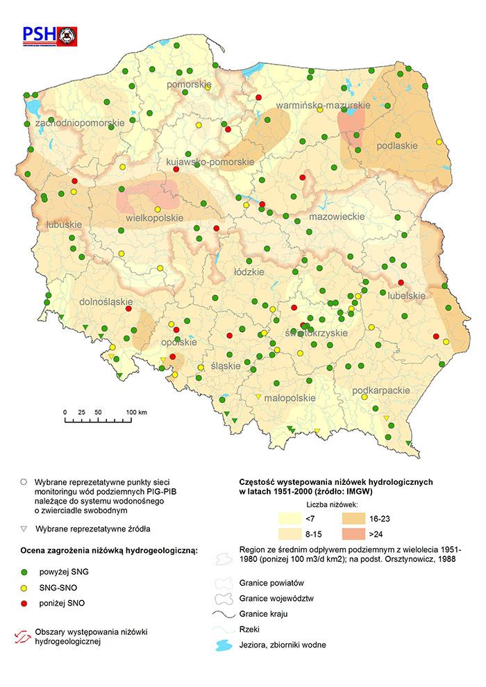 W opisywanym kwartale nie stwierdzono zagrożenia niżówką hydrogeologiczną występującą w skali regionalnej. W większości analizowanych punktów badawczych (ok. 92%) zwierciadło wody podziemnej znajdowało się powyżej granicy stanu niskiego ostrzegawczego (SNO). Obniżenie się zwierciadła wód podziemnych poniżej wartości SNO występowało jedynie lokalnie i stwierdzone zostało w 15 punktach obserwacyjnych na obszarach województw: dolnośląskiego, kujawsko-pomorskiego, lubelskiego, lubuskiego, mazowieckiego, opolskiego, śląskiego, świętokrzyskiego, warmińsko-mazurskiego i wielkopolskiego.